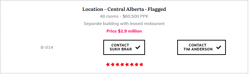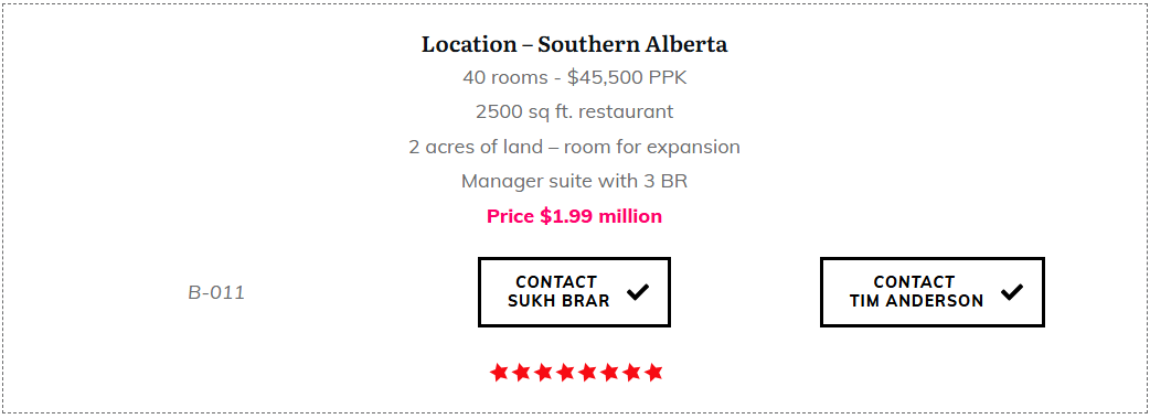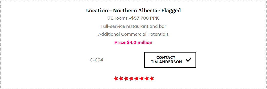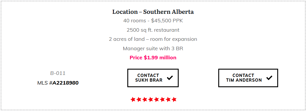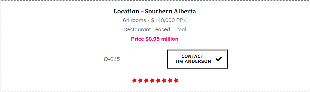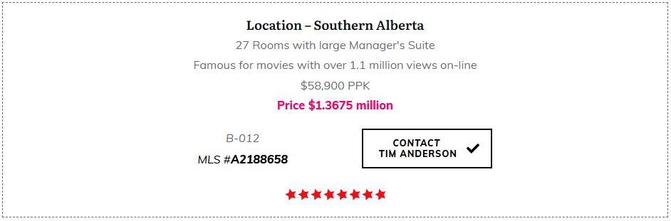 We have an extensive selections of Hotels for sale in Calgary and throughout Western Canada. Interested? Click a property link below to check out the details on my HotelExchange.ca website.